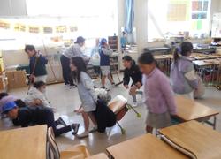 3月24日、大掃除がありました。ドアのレールや窓の桟など、細かいところまで丁寧に掃除をしていました。一年間過ごした教室をきれいにして、今年度のしめくくりを気持ちよく迎えられるようにしようという気持ちが伝わってきました。