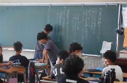 5年生が、算数で図形の角について学習していました。この日は、三角形の3つの角の大きさの輪が180°であることを利用して、四角形の4つの角の和が何度になるのかを調べていました。子どもたちは、四角形の中に三角形を見出すことで説明しようと、複数の考え方を見つけ出していました。