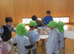 1年生は、生活科で取り組んだ竹やドングリを使って、来ていただいた人にいろいろなあそびをしてもらう「しぜんって すごいね! パーティー」を行いました。幼稚園や保育園の園児もたくさん来校し、子どもたちは遊び方を教えたりやさしく声をかけたりして、自分たちの取組を生かした楽しい発表の場をつくっていました。