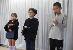 12月16日の「フェスティバル駒林」は、児童運営委員会の司会進行でフィナーレを行い締めくくりました。6年生による「児童代表の言葉」では、それぞれの学年の発表を見て感じたことを伝えていました。そのよさをしっかりと伝える内容は、6年生の頼もしさを感じるものでした。1年生代表の「はじめの言葉」、4年生による「おわりの言葉では、それぞれの代表児童が、このフェスティバルでがんばったこと感じたことを堂々と伝えていました。