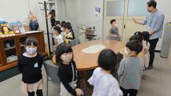 1年生もずいぶん学校に慣れ楽しく活動しています。普段は、教室や校庭、体育館など授業や休み時間に使う場所で過ごしていますが、学校にはどんな施設があるのか興味が湧いてきました。学校を探検しながら、鍵がかかっている場所にいくためにはどうすればよいか、職員室の入り方、施設の使い方などを学んでいます。
