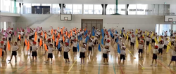 運動会練習が始まりました。3年生はフラッグをもって演技をします。休み時間も元気いっぱいで演技の練習をしています。