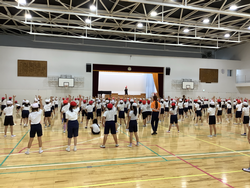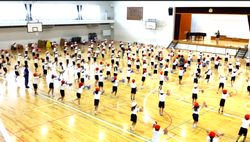 運動会に向けて、演技の練習が始まりました。1年生は、ポンポンを使って演技をします。元気よく声を出して練習しています。