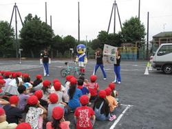 21日(水)に交通安全教室を行いました。子供たちが安全に歩いたり自転車に乗ったりできるよう、マリノスケをはじめ、たくさんの方々が協力してくださいました。本当にありがとうございました。