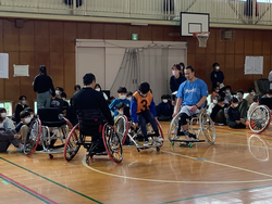 4~6年生はチームを作り、主催の方が用意くださった15台もの競技用車いすを使って「車いすリレー」と「車いすバスケットボールの試合」を体験。初めて乗る車いすに戸惑いながらも、どの子も笑顔いっぱいで、楽しく充実した体験をさせていただきました。