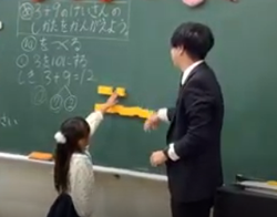 4校時、1年1組では、単元名「たし算」を取り上げ、「被加数を分解して計算する方法(被加数分解)を理解する」を本時目標とした授業を実践しました。