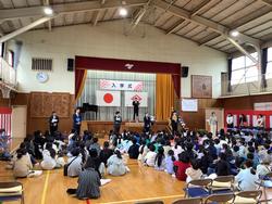 代表児童からお手紙と花束、全校児童から校歌のプレゼントをして、離任する教職員も大変嬉しそうでした。