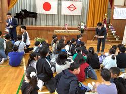 集会は子どもたちが運営しました。しらさぎを見守る会の方々に子どもたち一人ひとりが書いたお手紙の贈呈、全校児童で歌う校歌のプレゼントなどを行いました。しらさぎを見守る会の皆さんはとても喜んでくださいました。