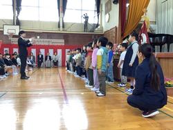 午前8時30分から行われた全校集会「卒業生を送る会」では、1年生から5年生までの児童に見守られながら、6年生とのお別れの会を行いました。