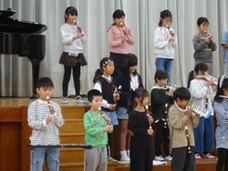 合奏「ミッキーマウスマーチ」はリコーダーを中心として、鍵盤ハーモニカや打楽器を入れてリズムよく、楽しく演奏することができました。