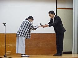 明日11月14日(金)にPTAから開校記念品としてオリジナルデザインが入ったおせんべいが1人2枚配付されることをお知らせすると、子どもたちは喜んでいました。そのデザイン画を作成してくれた6年生児童の表彰を行いました。
