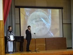 校長先生から、日本人の科学者がノーベル賞を受賞したお話をしました。未来ある子どもたちにとって、夢を実現させるためにどんなことが必要なのかをわかりやすく説明しました。子どもたちもきらきらとした眼差しで聞き入っていました。