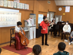 最後にはアンコールとしてチェロとバイオリンとピアノで「小さな世界」を演奏してくださいました。演奏に、お話に、そして本物のチェロの音色に魅了された1時間でした。