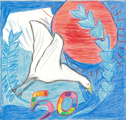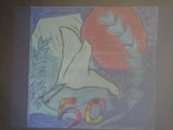 本校は、来年度(令和8年度)開校50周年を迎えます。それを記念して、全校児童に「開校50周年記念ロゴマーク」のアイデアを募集しました。
