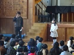 始めにまず、曲を演奏していただき、感想を3年生に聴くとただただ「すごい」「やわらかい音」と素直に感じたことを口々につぶやいていました。その後、曲の解説をしていただき、湖で泳ぐ白鳥のイメージを思い浮かべながら2回目の演奏を聴きました。