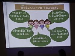 クラス代表児童の発表では、「苦手な食べ物をすぐにのみこんでしまっていたが、よくかんで食べることができるようになった」「よくかむことでだ液が出て、元気な体につながる」「ひみこのはがいーぜにも気をつけられた」「お皿をもって食べることができた」「自分の食べ方をふりかえることができた」「マナーに気を付けると、みんなも自分もおいしく食事ができるとわかった」「これからも姿勢やマナーに気をつけていきたい」などのふりかえりがありました。