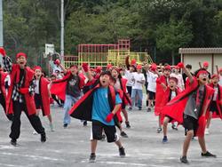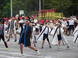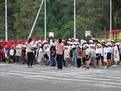 今日は、台風の影響で強い風が吹く中、全校児童が参加して、全体練習に取り組みました。