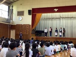 一人ひとりの委員長のお話を、全校児童が真剣な眼差しで聞き入っていました。一年生も、初めての参加とは思えないほどしっかりとした姿勢で聞いて、すばらしかったです。