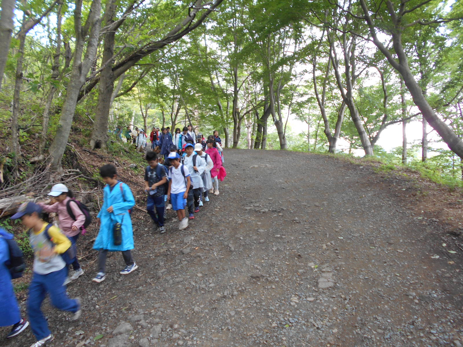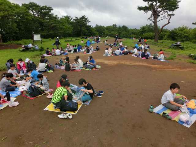 1時間ほどのハイキング登山。少し急な坂もありましたが登り切り、山頂付近でお弁当を広げました。「三湖台」の名前の通り西湖・本栖湖・精進湖を望むこの峠、雲の切れ目から西湖の湖面と青木ヶ原の樹海が見えます。