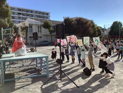 また、運動会で踊った「たからもの」の歌を作詞・作曲したシンガーソングライターのkaho*さんにお越しいただき、全校でたからもののダンスを披露した後、歌を歌っていただきました。実際に聞いてみると、改めて、「たからもの」の歌の素晴らしさが伝わり、どの子も感動していました。