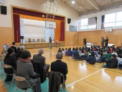 1月7日(水)体育館にて「新年の式」が行われました。地域、保護者の方々も来てくださり、全校で新年のお祝いをしました。