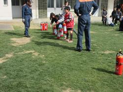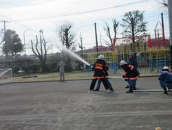 晴天の下、地域防災訓練が行われました。児童は水消火器での消化体験、煙が充満した部屋から避難する体験、消防車の見学、アマチュア無線の方々のご協力で、無線での交信体験、そして、消防車からの放水体験をしました。水道局の方から、非常時には、学校の地下にあるタンクから給水を行うことを説明していただきました。すすき野消防出張所所長様からは、3年生が防災についてのお話を聞きました。日ごろからの備えの大切さ、万が一発災した際の行動について考える機会となりました。