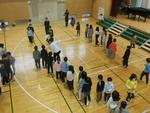 新年度の登校班に向けた指導(班長引継ぎ)が体育館で行われました。次年度の各登校班の班長が一堂に会して、通学の際の安全確認や諸注意について確認を行いました。