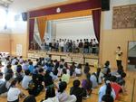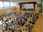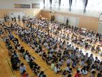 今年度初めてとなる集会委員会による全校集会が体育館で行われました。1年生を迎える会を経て、1年生も参加して学年やクラスにまつわるクイズに答えました。