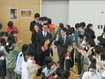 卒業生を送る会が校庭で行われました。1~5年生の在校生が、明日卒業証書授与式を迎える卒業生に感謝の気持ちを伝えました。卒業生を送る会の後、6年生の児童が委員会活動やクラブ活動、たてわり活動などで一緒になった各学年の教室を訪問して卒業にあたってのメッセージを伝えました。