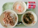 麦ご飯 牛乳 ツナそぼろ 豚汁