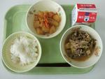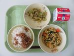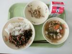 ご飯 牛乳 親子煮 磯香あえ 大豆とじゃこの炒り煮