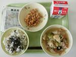 ご飯 牛乳 豚肉と大根の煮物 煮びたし 納豆