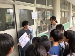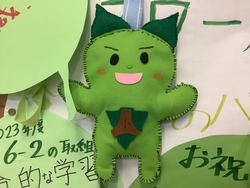 ゆるキャラ「はっぱちゃん」制作 50周年記念児童集会を開催 はっぱちゃん顔出しパネル製作