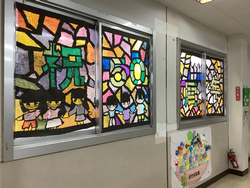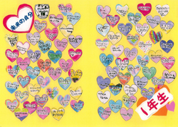 紅白饅頭のデザインを児童が考案 50周年学校クイズラリー開催 クイズラリーで集めたカードでプレート完成