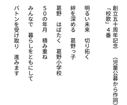 また、50周年限定の校歌の歌詞4番を作詞しました。