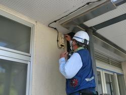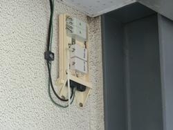 体育館の入り口に非常災害用公衆電話のモジュラージャックが設置されています。発信専用で2回線分あり、防災備蓄庫内にある電話機をつないで利用します。地域の電話線の断線等がない場合は、どなたでも利用できます。(1回の利用時間に制限がかかる場合があります。)