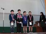 2月10日(火)の朝会で特別音楽クラブと特別陸上クラブ「葛野WINDS」の表彰がありました。