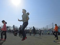 2月12日(木)の中休みに低学年は「両足跳び前」高学年は「二重跳び」に挑戦しました!子どもは記録に挑戦しました。