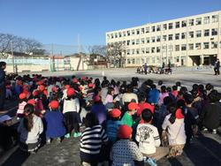 1月16日(木)に全校集会がありました。たてわりクラスで力を合わせて、楽しみました。今回は新聞を運び、その上を歩いていきました。制限時間内に新聞の道をつくってみんなで喜びました。 |
