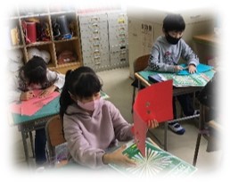 図工「カッターナイフタワー」を行いました。カッターに緊張する様子の子どももいましたが、カッターの練習を行っていくうちに慣れ、安全に学習ができました。タワーにつける窓の形を悩んだり、タワーに階段を付けたりと子どもたちはたくさん考えてつくることができました。 |