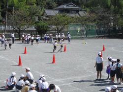 休み時間の後の時間を使って、校庭では白組がなかマイ競技の練習、体育館では赤組が応援練習をそれぞれ行いました。