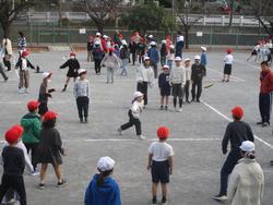 今日は、なかマイドッジ(赤グループ)を校庭で行いました。