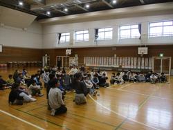 今年度と来年度の登校班の班長が体育館に集まり班長会議を行いました。