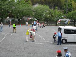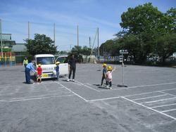 校庭に白線で道路を書き、実際に体を動かしながら行いました。