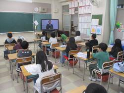 朝会では、冬休みの間の過ごし方をクイズにして子どもたちに知らせました。