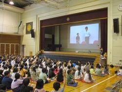 全校児童に集会で紹介をしました。