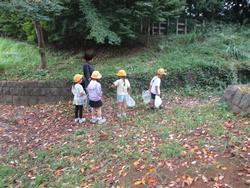 虫やどんぐりを見つけたり、落ち葉で遊んだりしていました。
