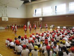 体育館では、応援係を中心に赤組の応援練習をしました。