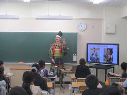 甲冑姿で授業をすすめていただきました。子どもたちは真剣に話を聞いていました。