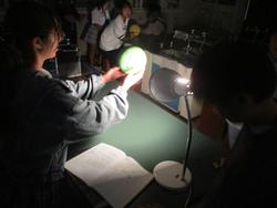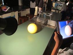 ライトを太陽に、ボールを月に見立てて変化の様子を見ていきます。